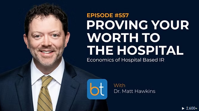 How can interventional radiologists turn their unique capabilities into revenue? Dr. Matt Hawkins, interventional radiologist and Health Policy and Economics councilor at the Society of Interventional Radiology (SIR), joins host Dr. Ally Baheti to discuss how interventional radiologists can prove (and get paid for) the value that they bring to hospitals.